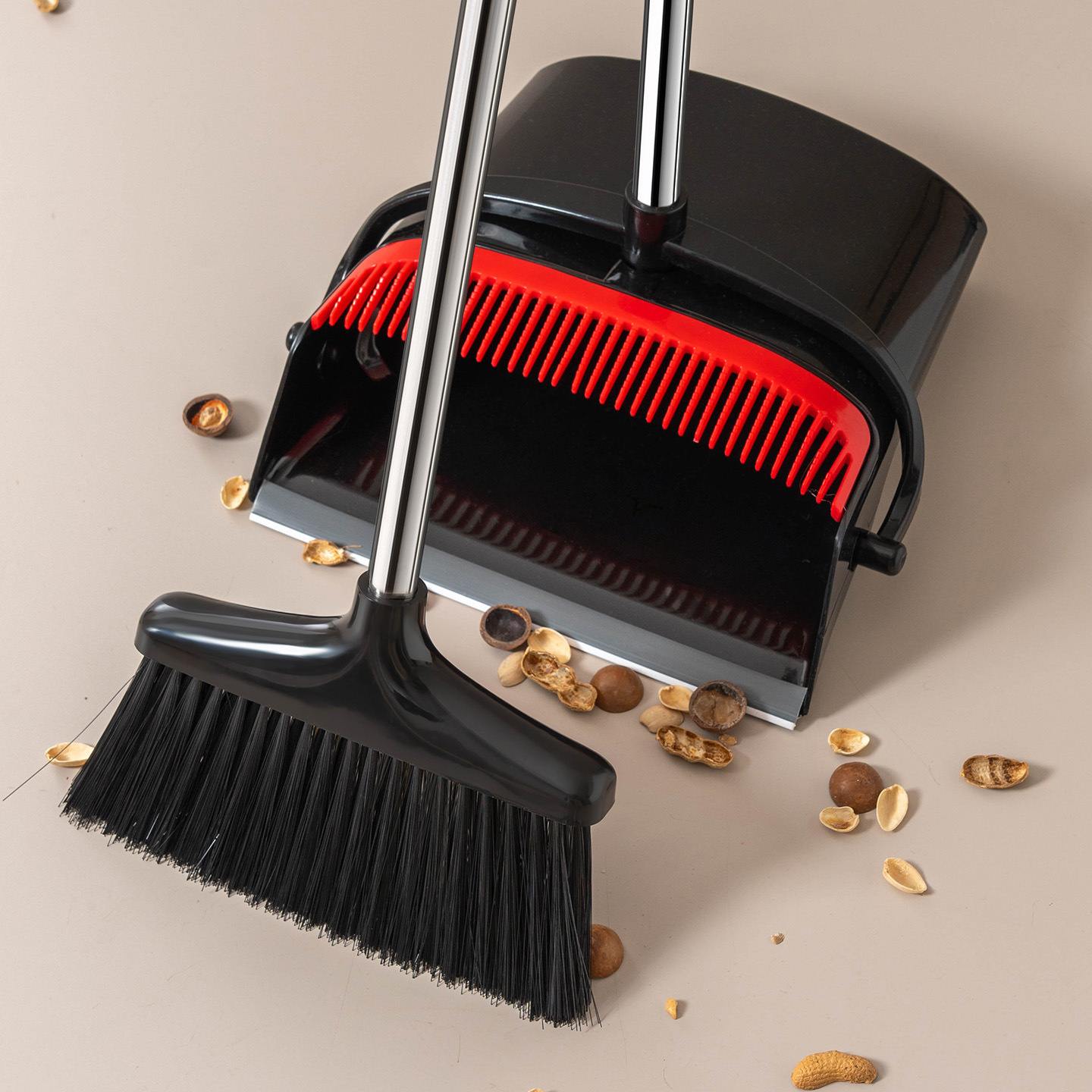 굽히지 않고 청소: 빗자루와 쓰레받기, 필요에 따라 다양한 공간을 갖춘 조절 가능한 손잡이는 몸을 구부리지 않고도 편안하게 쓸 수 있습니다. 견고한 구조 및 녹슬지 않는 재료 헤비 듀티 빗자루 강모 업그레이드: 쓰레받기 콤보 세트가 있는 빗자루는 고품질/부드러우며 튼튼한 강모로 만들어져 먼지와 먼지를 효과적으로 잡을 수 있습니다. 전체 크기의 로비 빗자루 헤드 및 대용량 쓰레받기는 넓은 영역을 청소하는 데 적합합니다. 쓰레받기 치아: 빗살에 내장된 쓰레받기는 빗자루의 머리카락과 쓰레기를 쓰레받기로 긁어내기 쉽고 손으로 끌 필요가 없습니다. 빗자루와 쓰레받기를 더 쉽게 청소쉬운 스탠드업 보관: 클립형 기능으로 빗자루와 쓰레받기를 수직으로 세워 완벽한 공간을 더욱 안전하게 만들어줍니다! 컴팩트한 수납으로 집이나 작업 공간을 깨끗하고 깔끔하게 유지하세요. 여러 표면에 완벽하게 작동하며 실내 사용에 적합합니다. 확장된 쓰레받기의 더 뻣뻣한 털과 고무 처리된 가장자리가 먼지가 미끄러지는 것을 효과적으로 방지합니다. 손 빗자루는 타일 표면에 탁월하여 탁월한 청소 성능을 제공합니다. 더 가는 빗은 더 작은 잔해물을 포착하고 바닥과 테이블에서 애완동물의 털을 제거하는 데 도움이 되어 청소 과정을 더욱 효율적으로 만듭니다.